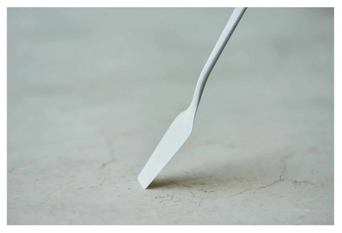 先端の厚さがわずか0.3mm。ほとんど存在を感じない程うすく、ヘラのような平らなデザインによって、味わいに摩擦を生みにくくケーキ本来の味わいを深く感じることができるため、口に運んだ瞬間からおいしさが溢れ出します。また、プラスチックの中でも環境配慮型の「トライタン」という新しい樹脂を使用しており、スプーンの温度や質感、味を意識することなく純粋なケーキのおいしさを堪能できます。