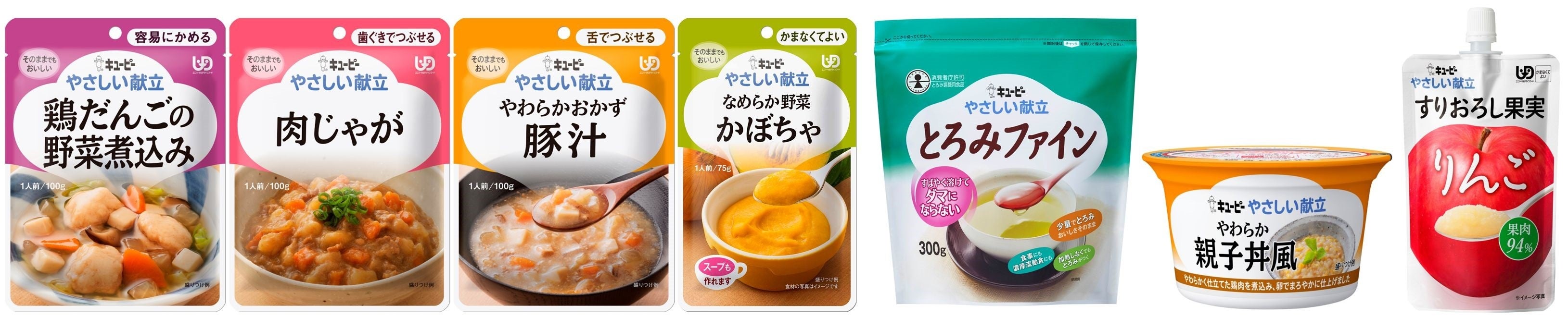 ※1 日常の食事から介護食まで幅広く使える、食べやすさに配慮した食品。かたさや粘度に応じて、日本介護食品協議会により制定された4区分(容易にかめる・歯ぐきでつぶせる・舌でつぶせる・かまなくてよい)と、とろみ調整で構成。
