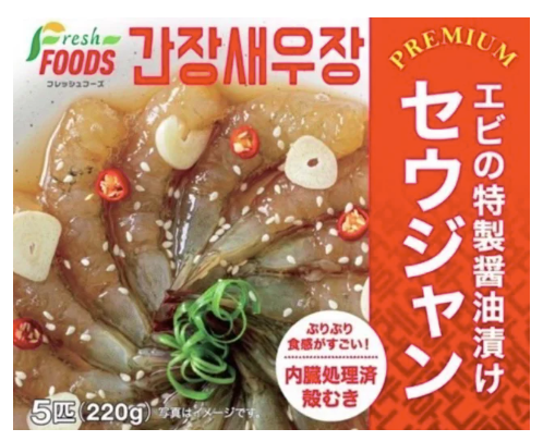 そのほか、カケジャンケジャン 600g、カケジャンケジャン 270g、ヤンニョムケジャン(切り蟹)220g、ジョンボクジャン(アワビ醤油漬け)2匹 300gがあります。