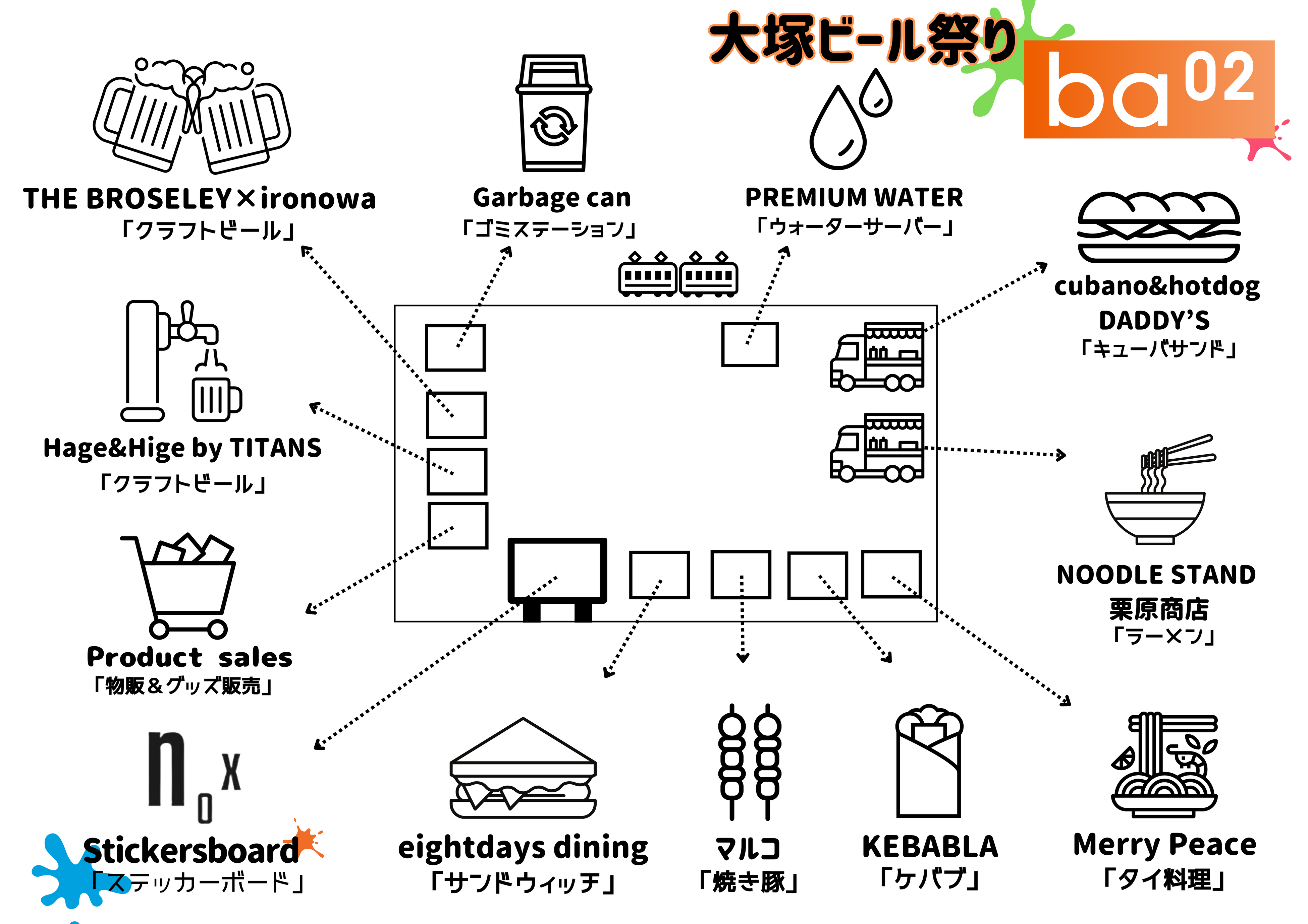 ・開催場所:東京都豊島区北⼤塚2丁⽬28-3 東京⼤塚のれん街横駐⾞場(ba PARKING)/東京都豊島区北⼤塚2丁⽬26-1 ba01 1F eightdays dining ※JR⼭⼿線「⼤塚」駅北⼝より徒歩2分