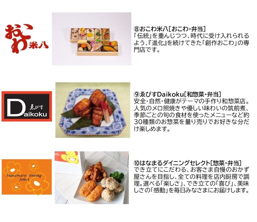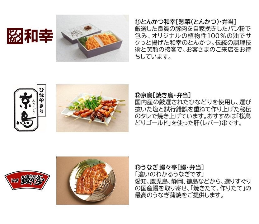グランデュオこだわりの各専門店やレストランのお惣菜を