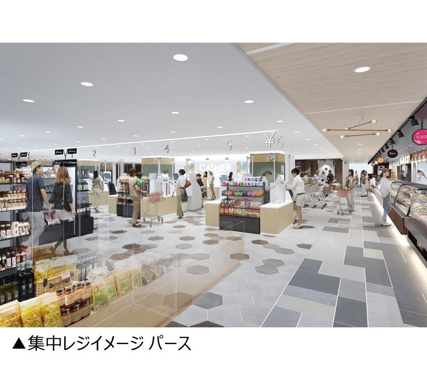 グロッサリーと生鮮食品の店舗のお会計を集中レジでまとめて