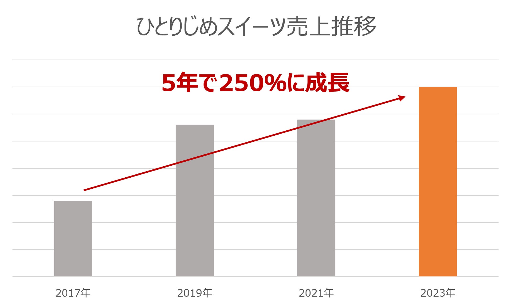 「ひとりじめスイーツ」は、パッケージを「ストライプ」で統一しています。その目立つストライプのパッケージがお客様の目を引き、「パッケージ買いした!」や「ふと目についたから買った」などのお声を頂いています。さらに2022年秋冬からはパッケージをリニューアルして販売。目印のストライプを残しながら、より高級感のある色のトーンや素材のイメージを用いることで売上にも繋がったと考えています。