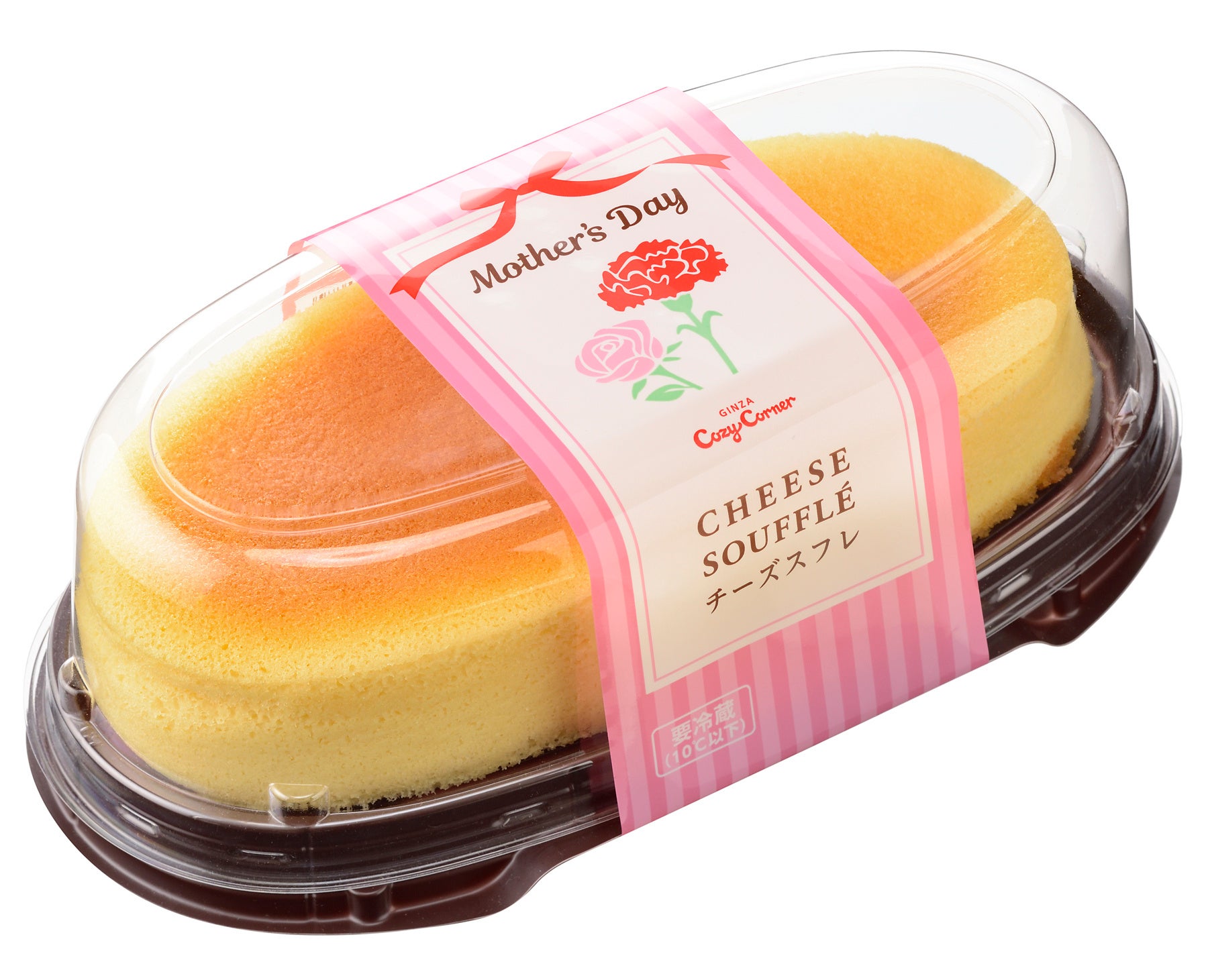 “しっとり、ふわシュワッ”食感で人気のチーズスフレ。メレンゲをきめ細かく泡立てて、気泡をつぶさないようにゆっくり蒸し焼きにしました。口いっぱいに、ふわシュワっとひろがるチーズの旨みに、お母さんも思わずにっこり♪母の日限定でカーネーションのイラストをデザインした巻紙でラッピングしました。