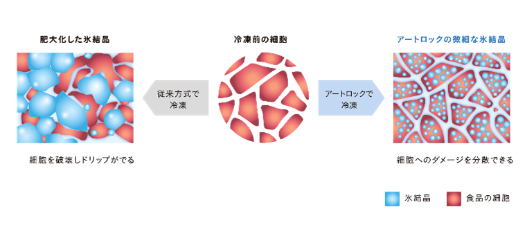 一般的にレバーは解凍すると水分が全て逃げてしまうので加熱した後の食感も変わってしまい、冷凍が難しいといわれています。今回、鮮度を保ち、旨味を引き出す当社独自技術「リキリッチシールド」に加え、特殊冷凍機「アートロックフリーザー」を導入することで、冷凍したレバーでも極限まで生の状態に近づけて解凍することができるようになりました。レバーなど冷凍保存の難しい食材をご家庭で調理しても、フレッシュな味わいを楽しんでいただけるようになるので、より生産者の想いやこだわりをそのままに届けることができ、商品の価値をもっと理解していただけるようになります。