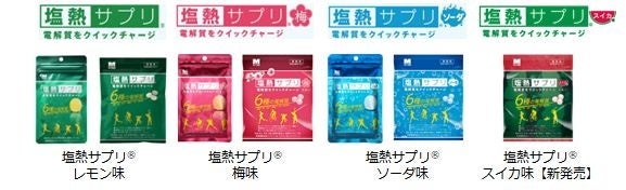 塩熱サプリ®は、これまでレモン味、梅味、ソーダ味の3タイプを販売してきましたが、この度、新フレーバーとなるスイカ味を新発売しました。毎日の作業やスポーツ時に、選べるフレーバーで飽きずに栄養を摂取いただけます。