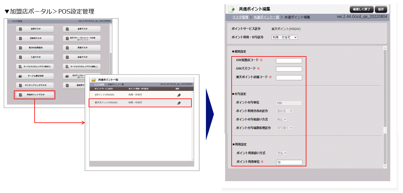 1:加盟店ポータルのPOS設定管理より「共通ポイントマスタ」を選択