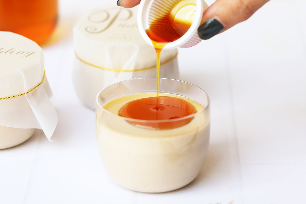 ・生クリームを加えることで、なめらかな口どけとコクが際立つ味わいに。口どけとともに広がるほうじ茶の香りが心地良い、ピネード自慢のプリンです。