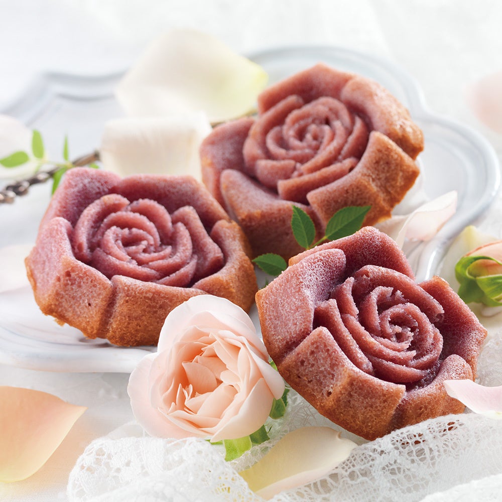 焦がしバターとはちみつのコクと旨みが生きた生地に、バラの香りとラズベリーの風味をプラスし、美しいバラのかたちに焼き上げたフィナンシェです。