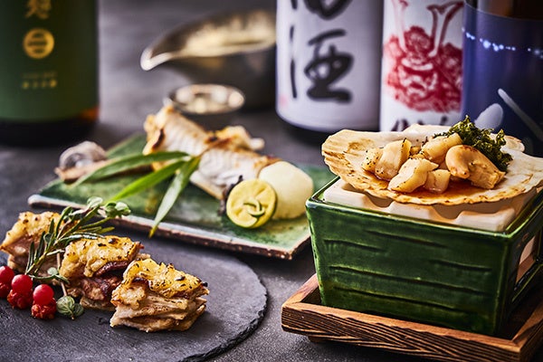 四季彩茶寮「旬香」では、素材がもつ旨みをいかした七輪仕立ての逸品や、鉄板焼き料理をご提供する四季彩コースを「青森・岩手フェア」と題してご提供します。また、ア・ラ・カルトや厳選した日本酒のご用意もございますのでお好みに合わせてご堪能ください。