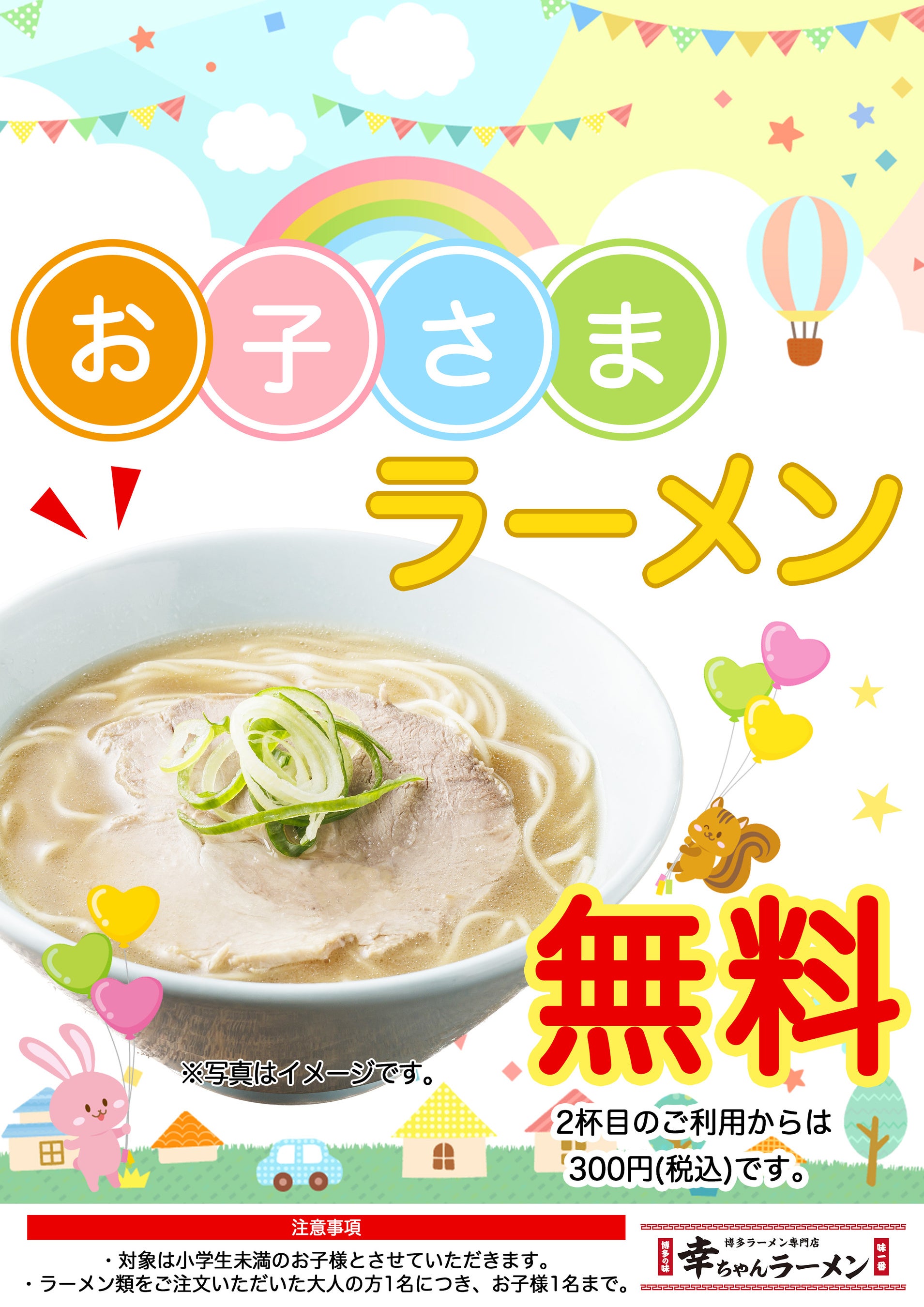 ※ラーメン類をご注文の大人1名様につきお子様1名様分を無料で提供いたします。