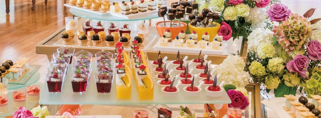 いちごを中心に季節のフルーツを使ったスイーツやライトミール等、約30種をブッフェ形式でご堪能いただけます。また、スタンドに素敵に盛り付けて、オリジナルアフタヌーンティーのお写真をお撮りいただけます。