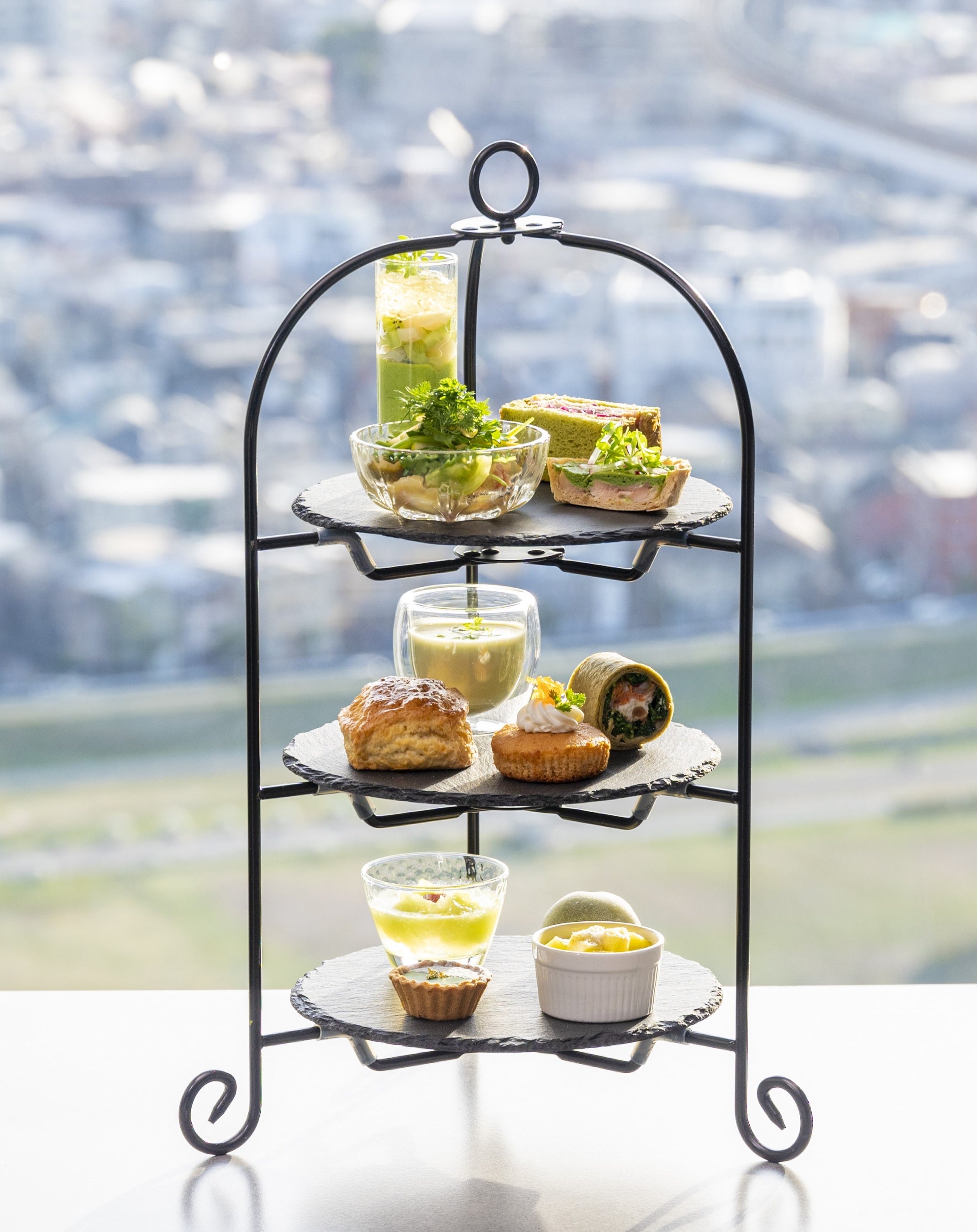 都心にありながら多摩川や富士山など自然が織り成す美しい景観をご堪能いただける「The 30th Dining Bar」。高層階ならではの開放的な空間で、旬の食材を織り交ぜ新緑の季節にも相応しい「緑」をテーマとした全12種類のラインナップによるアフタヌーンティーをご用意します。