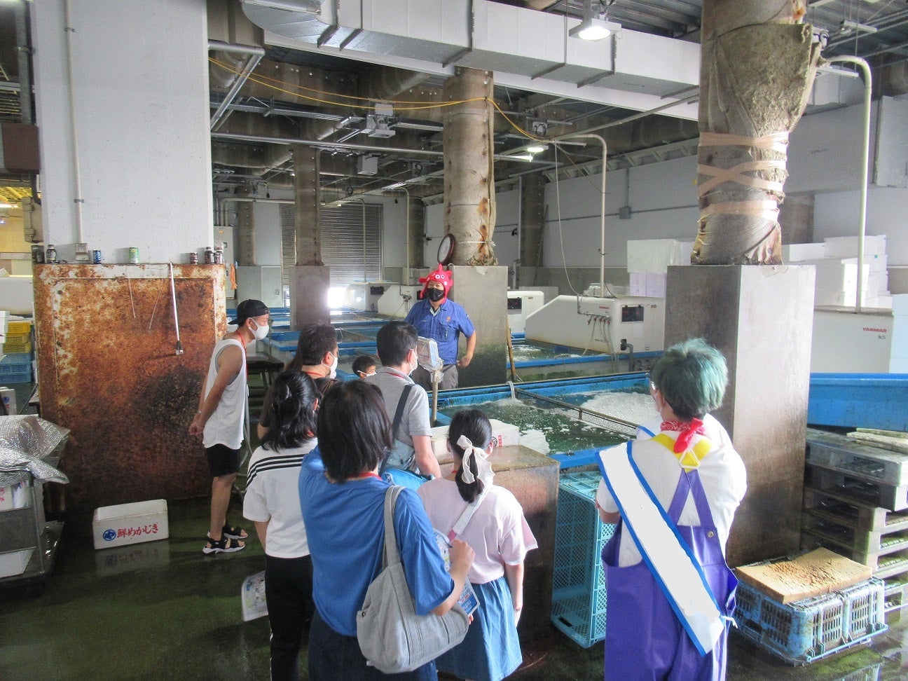市場内の活魚水槽・マグロ冷蔵庫等の見学、