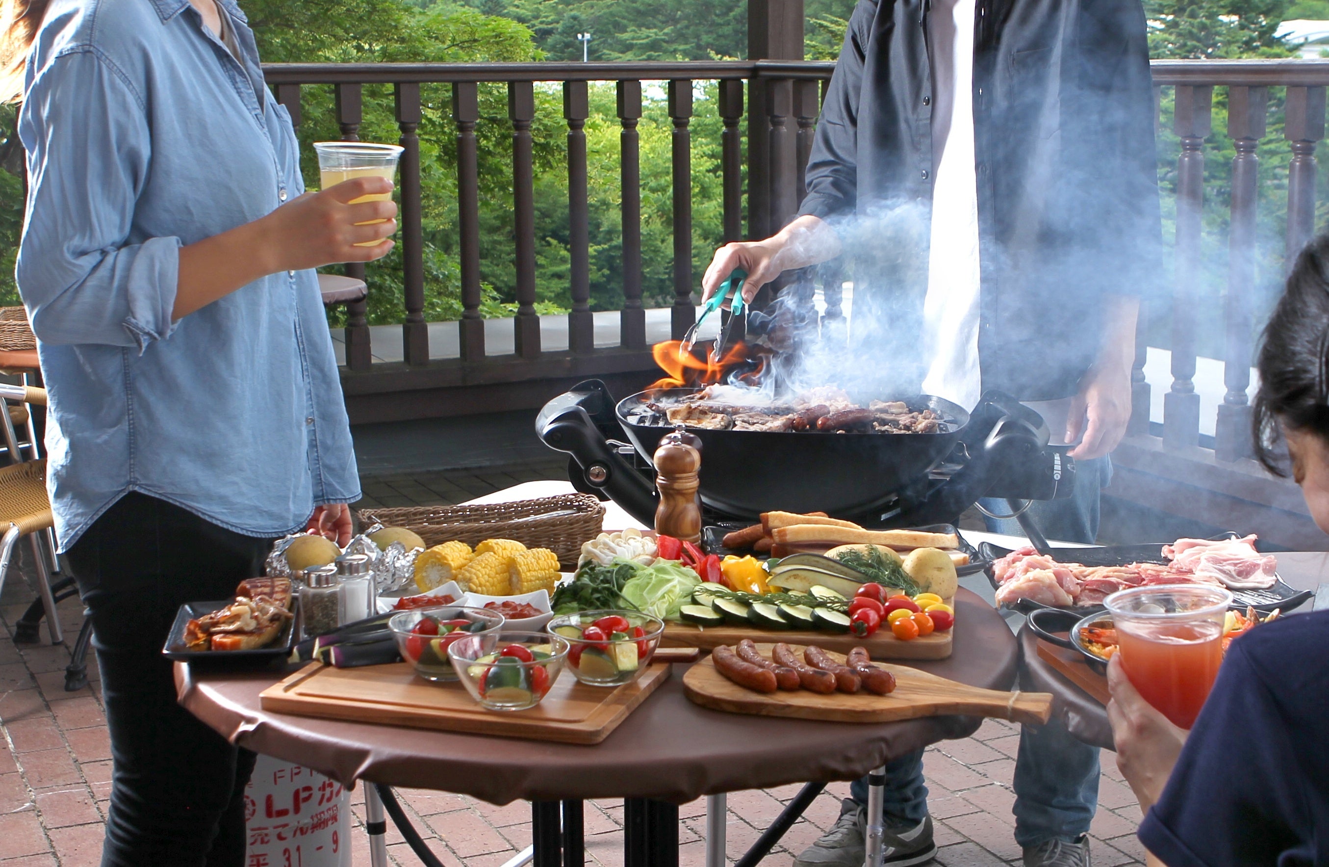 期間限定でオープンする『軽井沢バーベキューテラス』は、軽井沢の豊かな自然に囲まれた風通しの良い解放的なテラスで、手ぶらで手軽にバーベキューを楽しめる施設です。