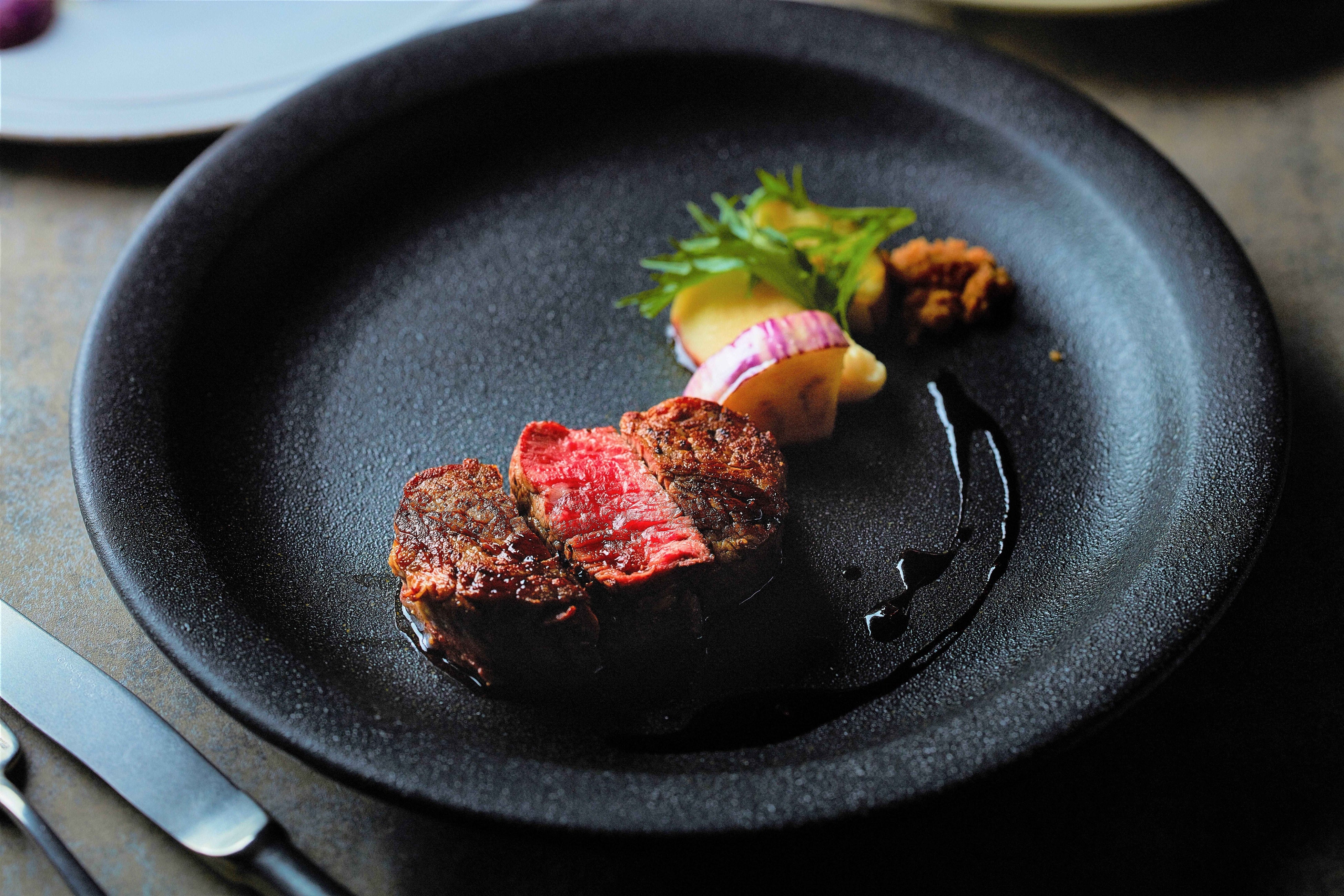 日本が誇る黒毛和牛は、その美味しさや品質で国内外から愛され続けています。その中でもフィレステーキは最高級部位とされ、絶妙な食感と風味が味わえる逸品です。ロゼ色に焼き上げたフィレ肉にトリュフと赤ワインを使ったソースを合わせた一皿です。