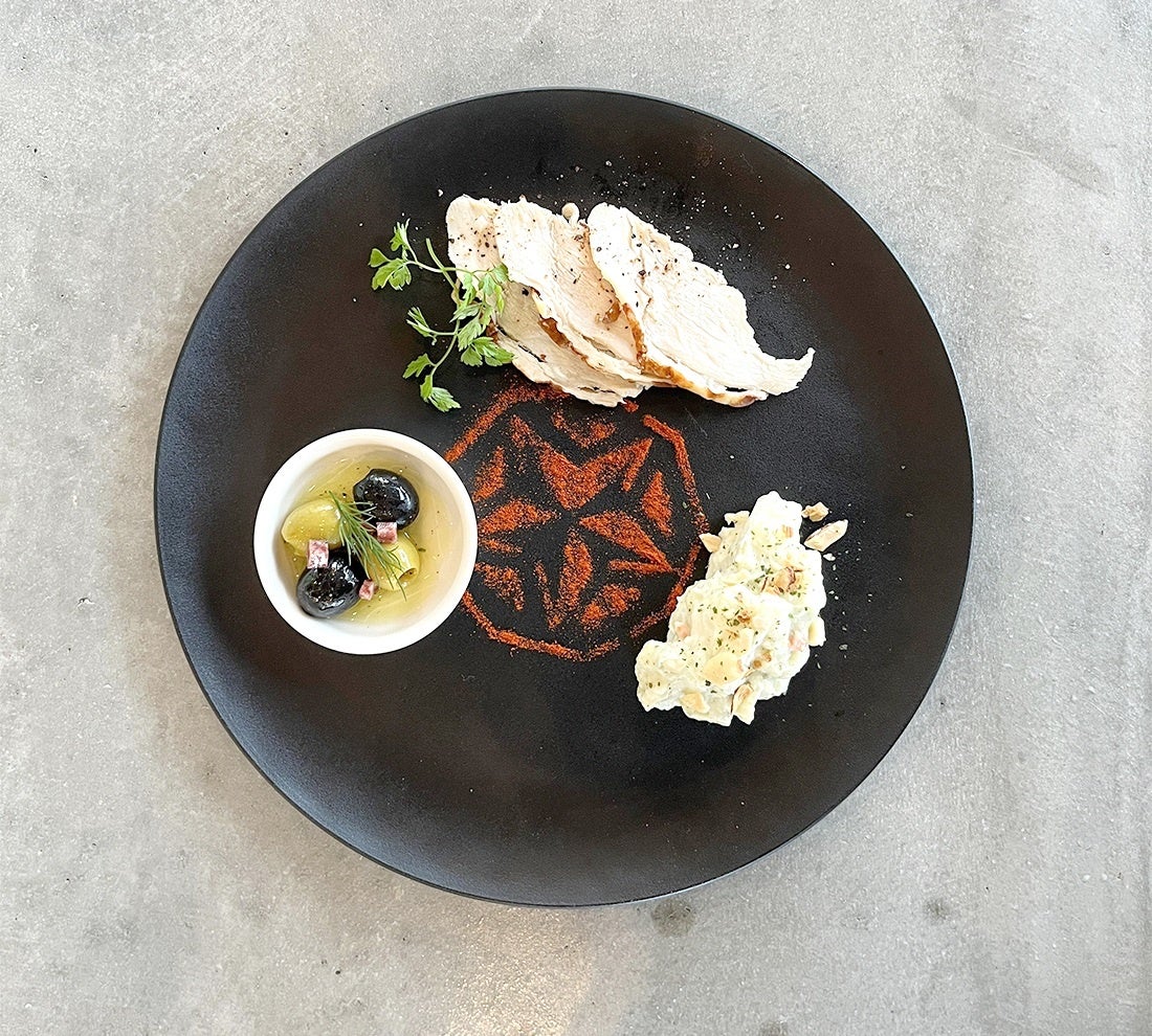 まるで魔法にかかったみたいな白いスモークに包まれたワインに合う前菜3種の盛り合わせ