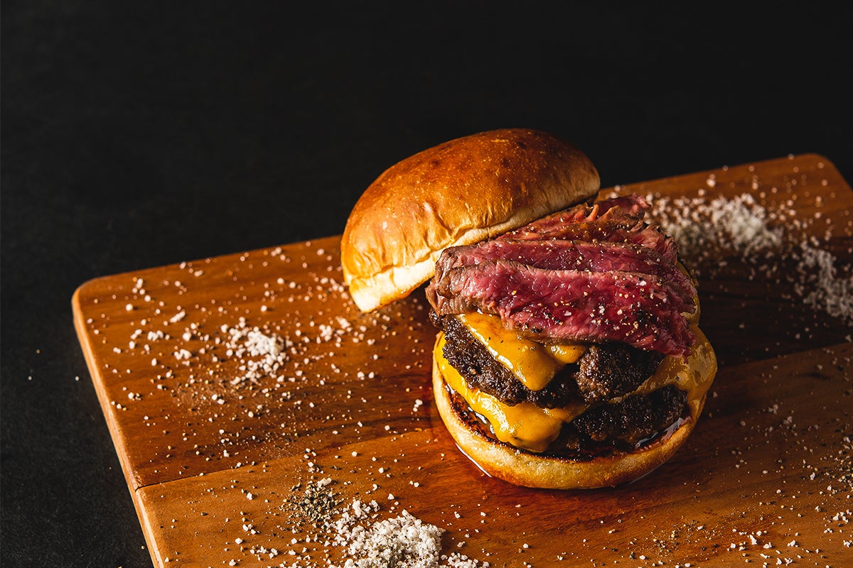 和牛パティとフレッシュな角切りオニオン、濃厚なチーズとソースのシンプルな構成で、和牛の美味しさをダイレクトにお楽しみいただけます。