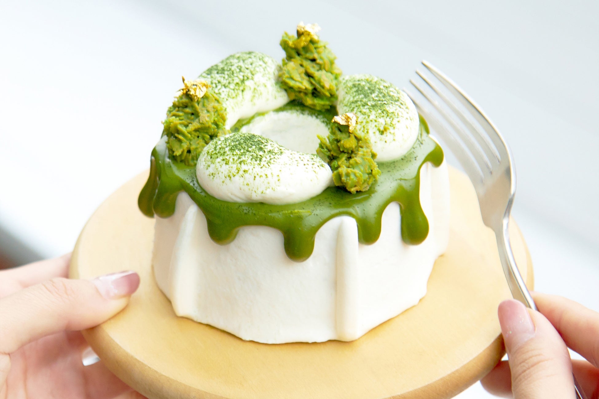 デコレーションの宇治抹茶ソースや生絞りクリームにはホワイトチョコレートを使用しており、抹茶好きの方はもちろん、どなたでも食べやすい甘さに仕上げました。