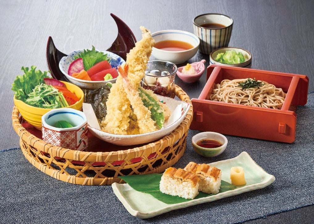 「真あなごと旬の野菜の美味しさをお客様に存分に味わって頂く」をコンセプトに、身厚で旨味のある天然活〆真あなごを一本揚げにした天ぷらを盛り込んだ麺物・丼物、彩り豊かな旬の素材を盛り込んだ御膳メニューを用意いたしました。