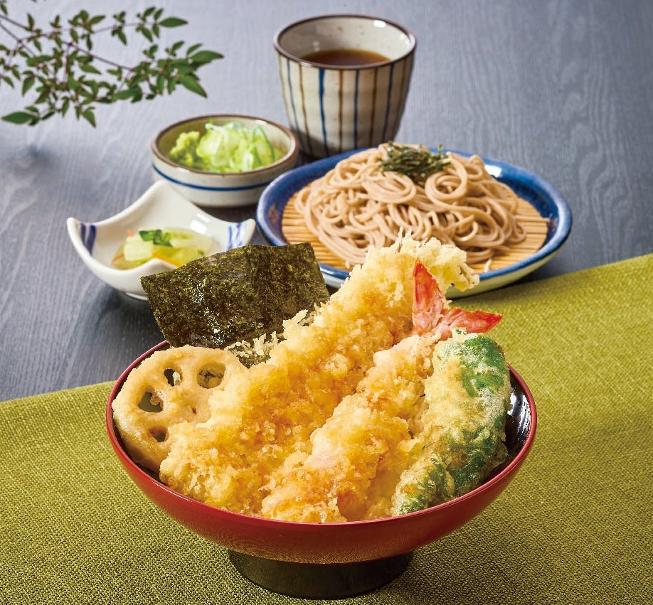 揚げたて、サクサクの天然活〆真あなごの天ぷらと、韃靼そば並びに毎日各店舗で製麺している国産そばが楽しめる自慢のメニューです。