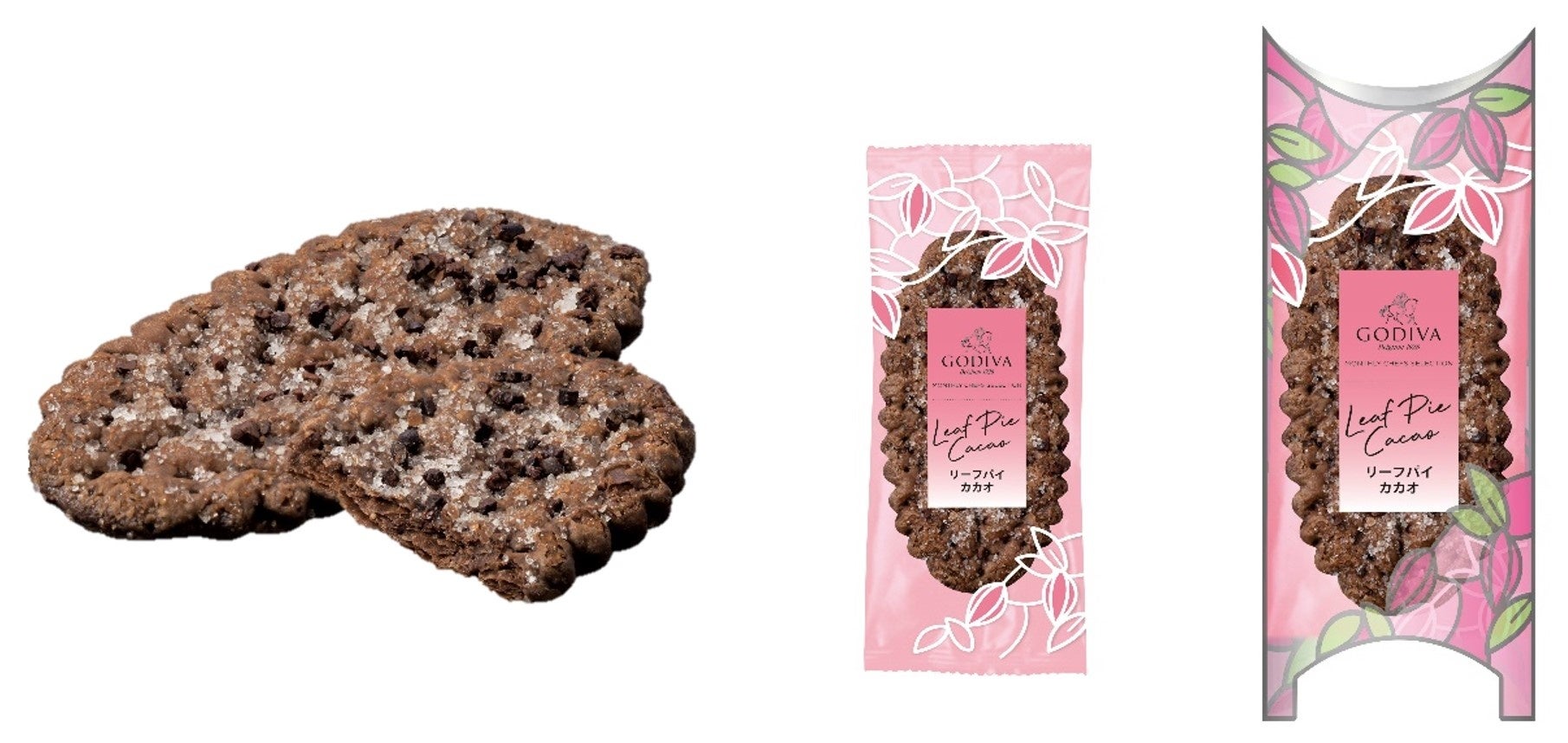 「ゴディバ マンスリー シェフズ セレクション」の新商品は、ベルギー産のチョコレートを使ったパイ生地を、「アンヴェルセ製法」※で折り込み、カカオニブとシュガーをまぶして焼き上げた「リーフパイ カカオ」。ほろほろとした口どけとザクっとしたカカオニブの心地よい歯ざわりとともに、豊かな発酵バターとカカオの香りの余韻が広がります。技術と手間をかけて作り上げた奥深い味わいと食感をご堪能いただけます。