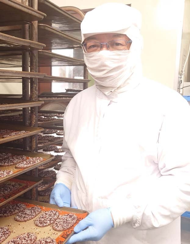 小麦粉よりバターを多く含む配合の為、生地の油分が多く、少しの配合や仕込み方の変化で生地の成形がたちまち上手くいかなくなる。その日々の繰り返しでした。配合と仕込みのバランスを何度も調整し、室温や生地の温度管理を徹底することで、製造を実現させました。