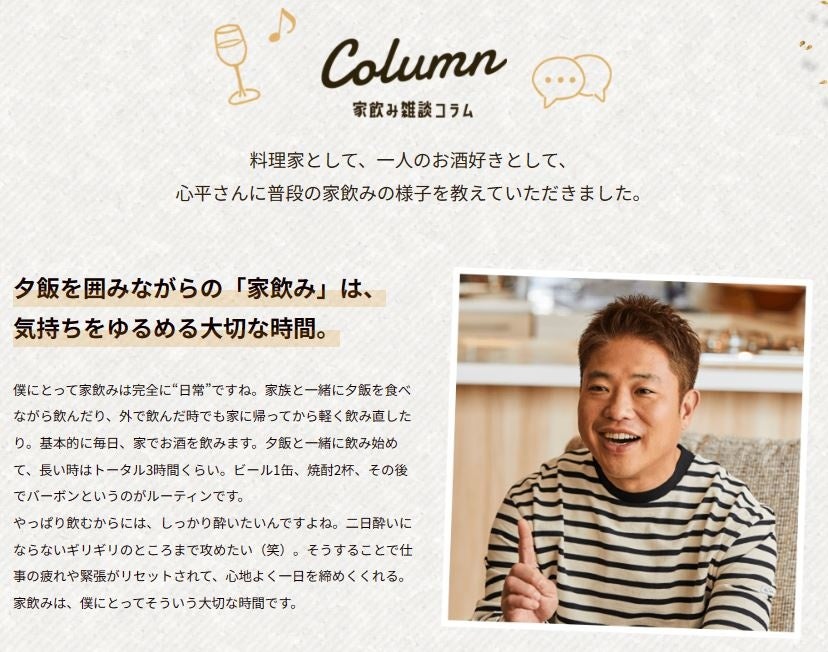 料理家として、一人のお酒好きとして、心平さんに普段の家飲みの様子を教えていただきました。おつまみをもっと楽しくするひと工夫も紹介します。