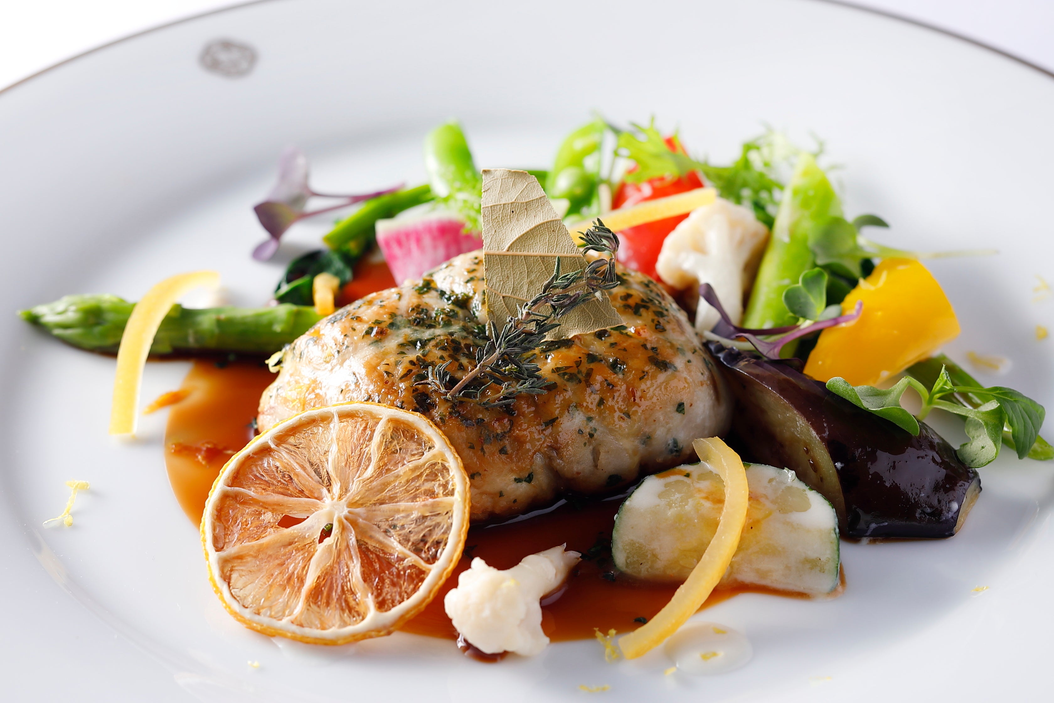 『帆立貝のムースをのせた真鯛のヴァプール 【さぬきのめざめ】とアンディーブのブレゼ 瀬戸内レモンの“コンフィ”添え』 2,970円 *スープ、パンまたはライス、コーヒー付