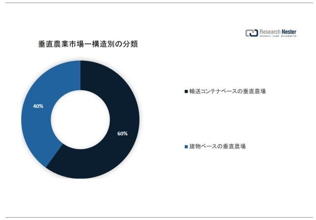 構造に基づいて、輸送コンテナベースの垂直農場セグメントは、予測期間に大幅な成長を遂げると予想されています。この成長は、場所に関係なく作物生産をサポートする構造の能力に起因します。コンテナ農業の主な利点の 1 つは、簡単に移動でき、栽培を開始するために広い土地や特別な施設を必要としないことです。また、競争が激化するにつれて、中古コンテナを購入するのが非常に安価になるため、輸送用コンテナの価格が下がり、より多くの企業が市場に参入できるようになります。ただし、このようなシステムには、比較的生産性が低いことや、光、熱、およびレイアウトの間の拮抗など、いくつかの欠点があります。したがって、コンテナベースの垂直農場の需要を後押しすると推定されるさまざまな技術的改善が行われています。