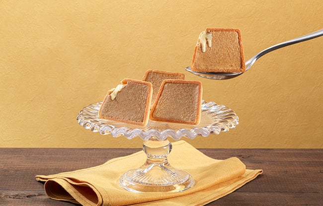 香ばしく焼いたかわいらしいプリン型のタルト生地に、トロリとしたプリンチョコを絞り、さらにキャラメルチョコ、表面にキャラメルパウダーをトッピングし焼き上げました。