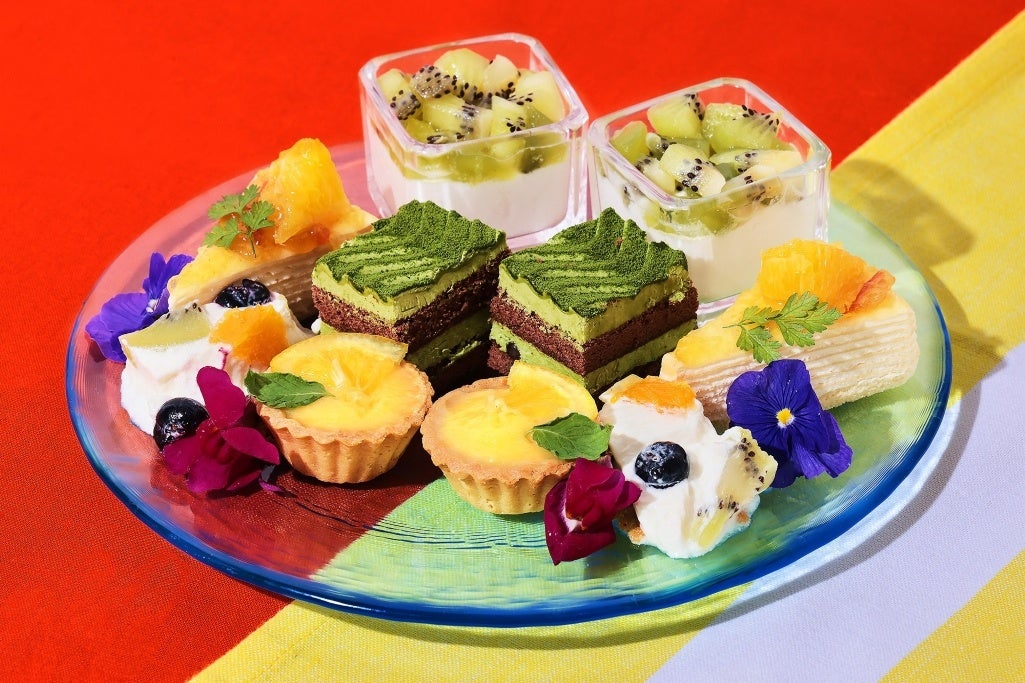 ・フルーツヨーグルトバーク・キウイソースのパンナコッタ ・抹茶ケーキ ・レモンクリームタルト