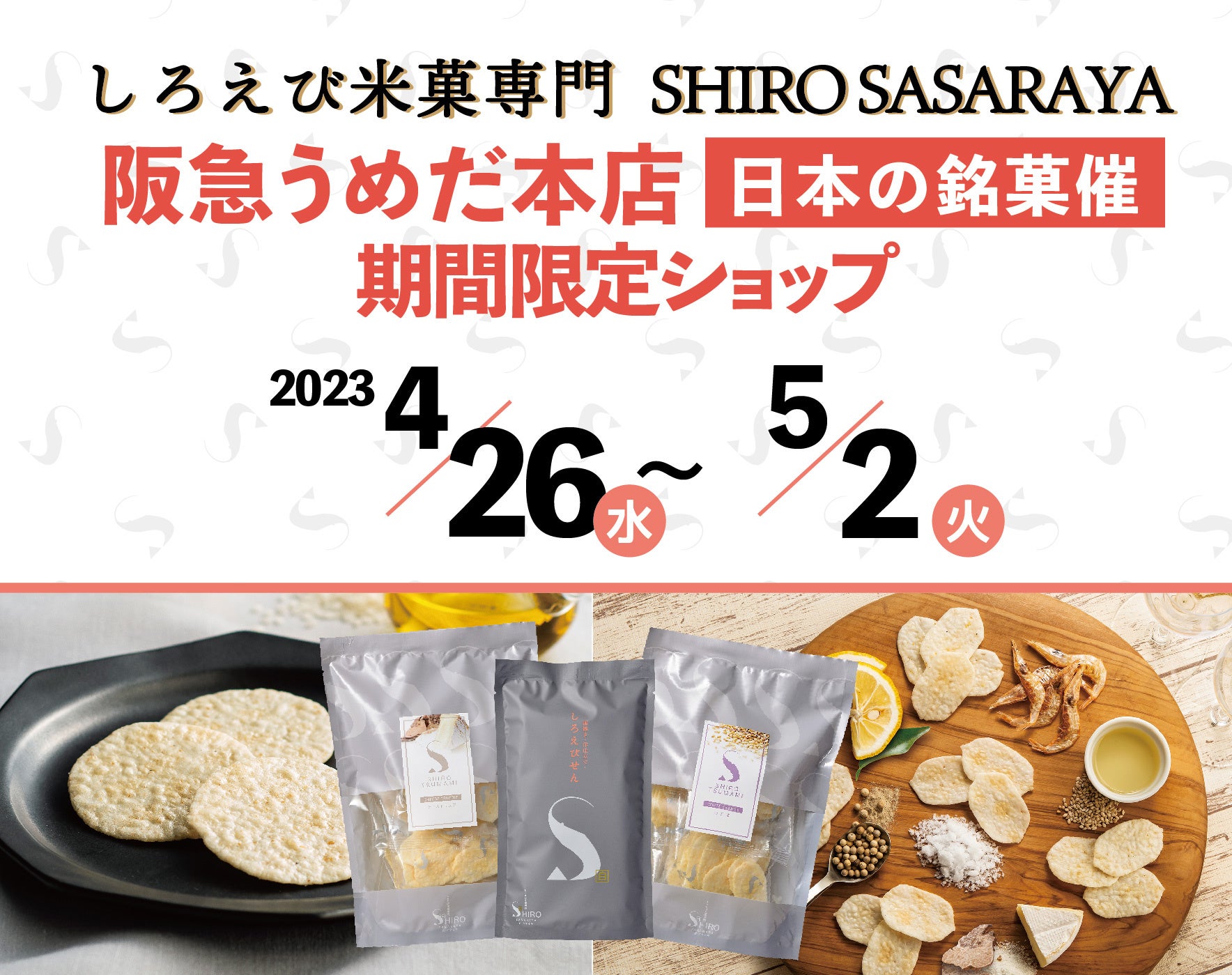 和と洋を融合させた新感覚のブランド、しろえび米菓専門【SHIRO SASARAYA】が誕生しました。