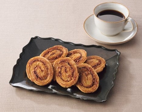 バターをたっぷり配合したパイ生地にキャラメルクランチとナッツを巻き込んでザクザク感を出し、キャラメルパウダーとキャラメルオイルを混ぜ込みました。バターとキャラメルの芳醇な香りとザクザクした食感により、何度も食べたくなる1枚に仕上げています。