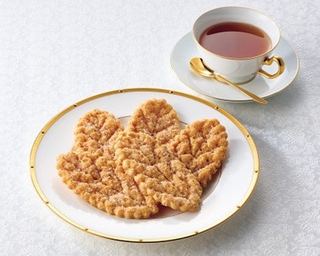 発酵バターを40%以上使用し、食べやすいリーフ型に仕上げた贅沢な逸品。一般的なパイ生地と異なり、バターで生地を包んでいく『逆折り込みパイ生地(フィユタージュ・アンヴェルセ)』という特別な製法で作られているため、サクサク・ホロホロとしたパイの食感と、口いっぱいに広がるバターの風味をお楽しみ頂けます。