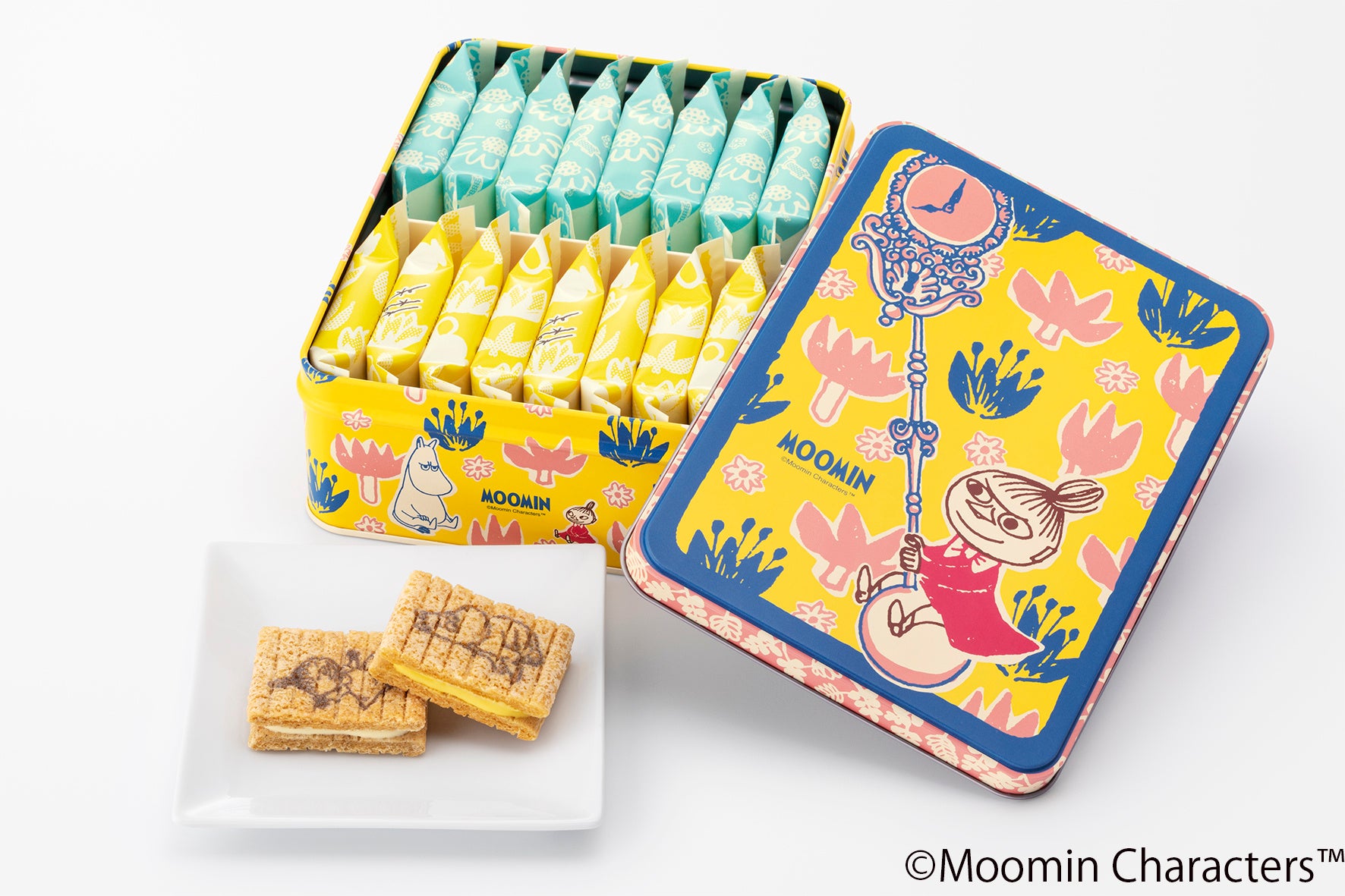 お料理が得意なムーミンママが作るレモネードをイメージした『ムーミン シュガーバターサンドの木 レモネード風』。バターをたっぷりと使用した“はちみつ香るシリアル生地”をこんがり焼いて、爽やかな“レモンショコラ”をサンドしました。バターのコクとレモンの酸味を繊細なバランスで合わせて、はちみつをほんのりと加えたこだわりの“レモネード風”です。リトルミイが「ドドン!」とデザインされたかわいいボックスでお届けいたします。
