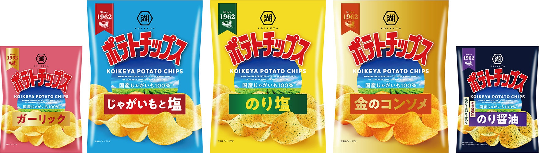 湖池屋は、1962年8月に「ポテトチップス のり塩」の販売を開始し、1967年には日本で初めてポテトチップスの量産化に成功しました。その後も時代に合わせた改良を重ね、おかげさまで「湖池屋ポテトチップス」ブランドは60周年を迎えました。そして2023年3月、日本のポテトチップス文化の原点である「湖池屋ポテトチップス」を、創業からの挑戦とこだわりを製品に込め、現代の嗜好に合わせた味へのグレードアップと、現代的で品質感のあるデザインへの進化を果たすべく、リニューアルを実施しました。
