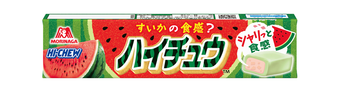 「ハイチュウ」は1975年の発売以来、心地よい食感とフルーツのジューシーな味わいで、長きにわたり、多くのお客様にご愛顧いただいております。この度発売するハイチュウ<すいか味>は、ハイチュウの特長である噛み応えのある独自食感に加え、「ハイチュウ」の中にキャンディチップを入れ、すいかの果肉を食べているようなシャリっとした食感に仕上げました。フレッシュでジューシーなすいかの味わいをお楽しみいただけます。初夏の訪れを感じる新商品の発売により、キャンディ市場を盛り上げるとともに、お客様に笑顔をお届けしてまいります。