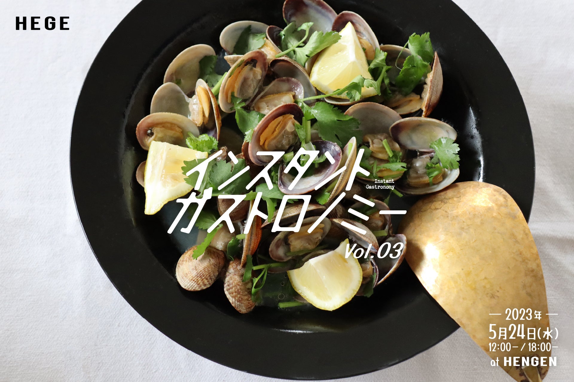 ひと皿で、炒める、煮る、炊くなどの調理を一皿でかなえる、直火可能なテーブルウエア「HEGE(ヘゲ)」を使い、手軽に美味しく、そしてエモーショナルな料理を体験する「インスタントガストロノミー」は、さまざまなジャンルの料理人・専門家をゲストに迎え開催するダイニングイベントです。