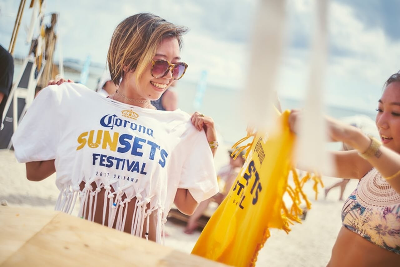 CORONA SUNSETS FESTIVALのTシャツを、オリジナルカスタムするワークショップを実施。