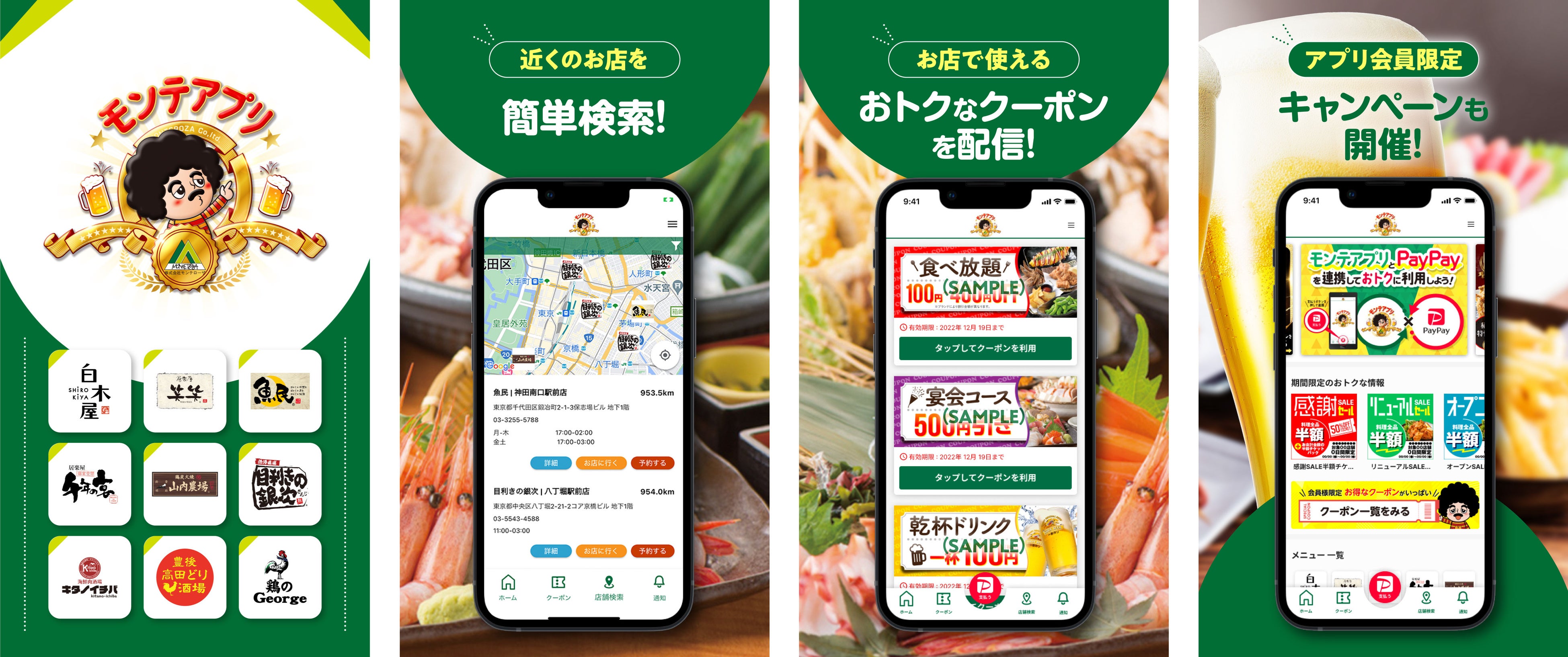 ㈱モンテローザグループの飲食店舗で利用できるお得なクーポンやキャンペーン、最新リリース情報、店舗検索などがチェックできるオールインワンのスマートフォン向けのモバイルアプリです。