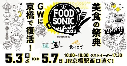 2023年 5月 3日(水・祝)~7日(日)の5日間、京橋フードソニック特設会場(JR京橋駅西口すぐ)にて開催される「FOOD SONIC 2023 in京橋」2019年の中之島での開催以来、4年ぶりGWに開催致します!