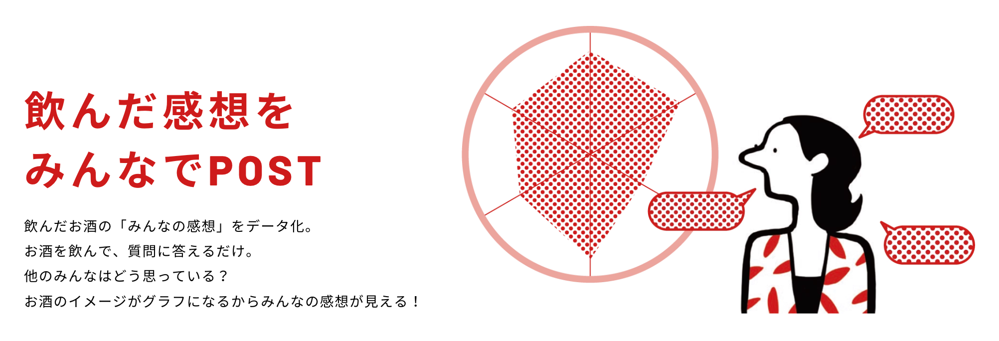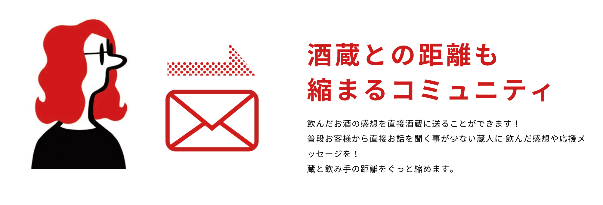 また、届いた日本酒にスマホをかざして銘柄を確認したり感想グラフを作ったりする機能を備え、中でもユーザーから人気が高い「酒蔵へPOST」機能は飲んだユーザーが酒蔵の蔵人にダイレクトにメッセージを送れる機能で、2023年4月現在で累計5000件を超えるメッセージが各酒蔵に届いています。