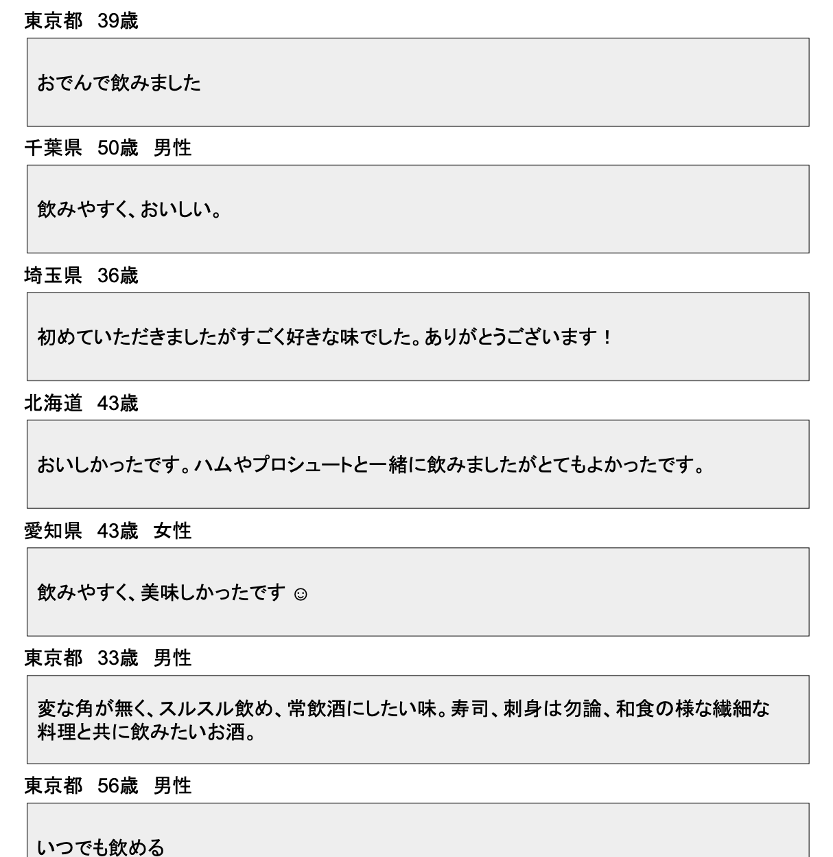 ※ 以下は、酒蔵にフィードバックしているユーザーコメントレポートの一部抜粋したものです。