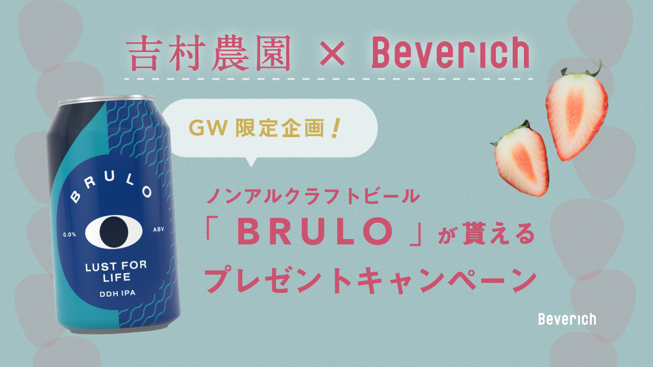吉村農園のいちご狩りに来園された方限定で、ノンアルクラフトビール「BRULO(ブルーロ)」を24名様にプレゼント!