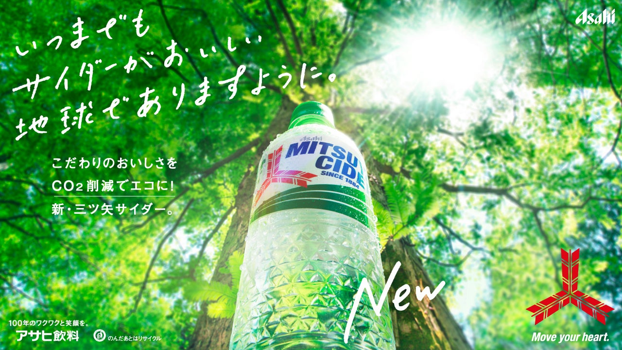 砂糖を不使用にして製造工程を見直すことで、すっきりした味わいはそのままに従来の『三ツ矢サイダー』と比較して2022年比で年間約100トン※のCO2排出量削減を見込んでいます。