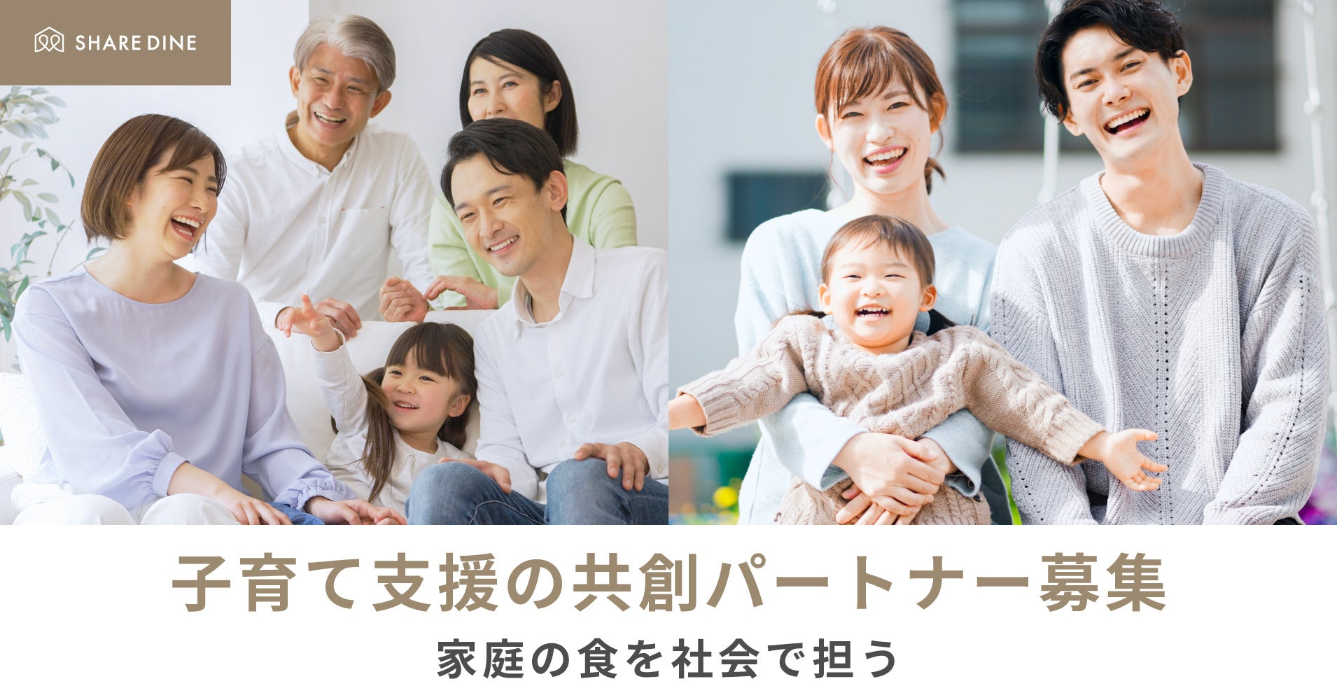 自治体の支援施策や企業の福利厚生で家事支援サービスの導入を検討されている法人パートナーを募集します。シェアダインは女性の産前産後のケアからお子様の成長を支える離乳食づくりなど、食事で子育て世帯を応援してきました。社会で家庭の食事を担う仕組みを実現させるために、サービス導入をおこなう共創パートナーを募集します(自治体、企業、団体などは問いません)。