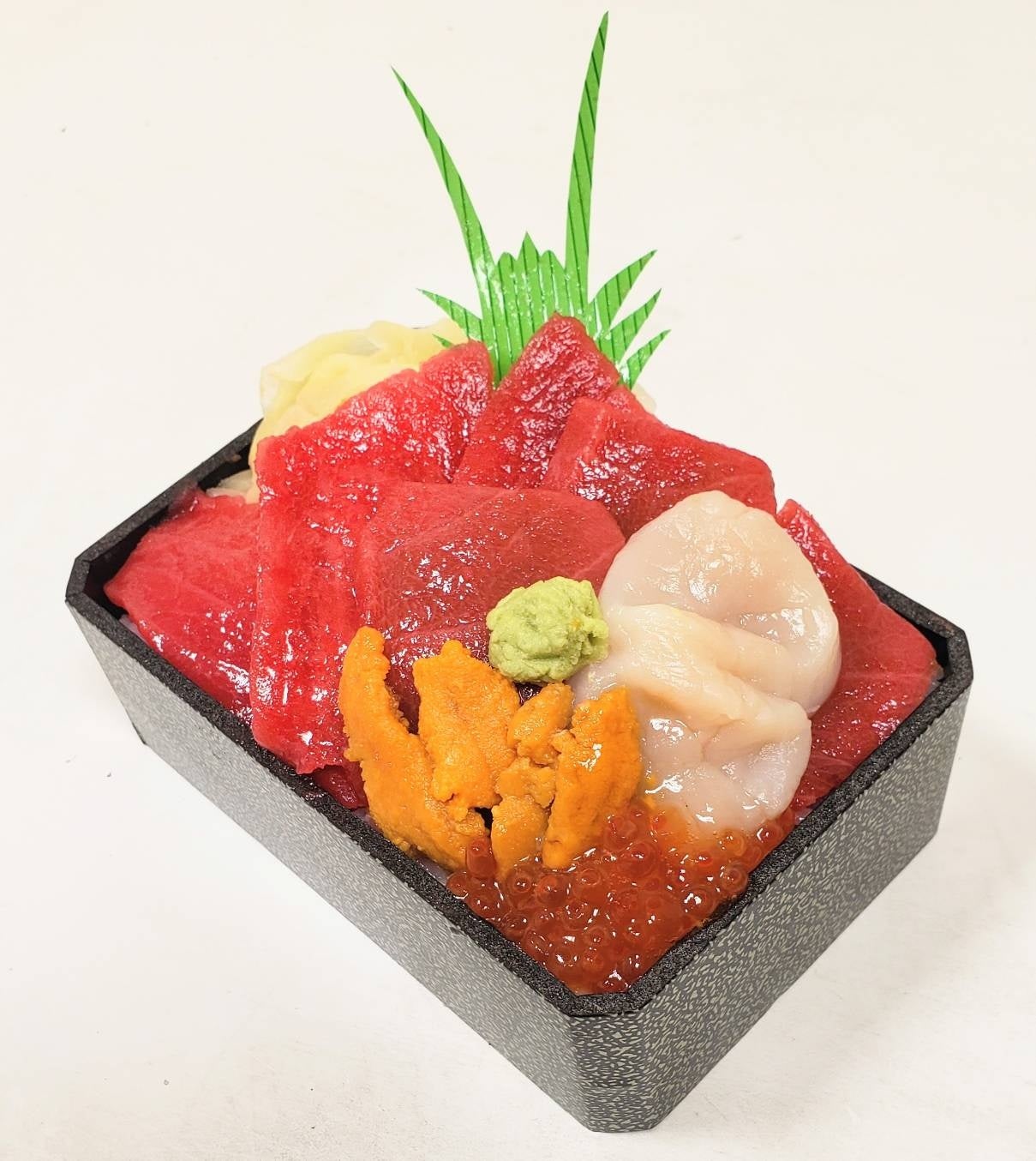 「まぐろ」と季節の海の幸を豪快に盛り付け、ボリューム満点です。