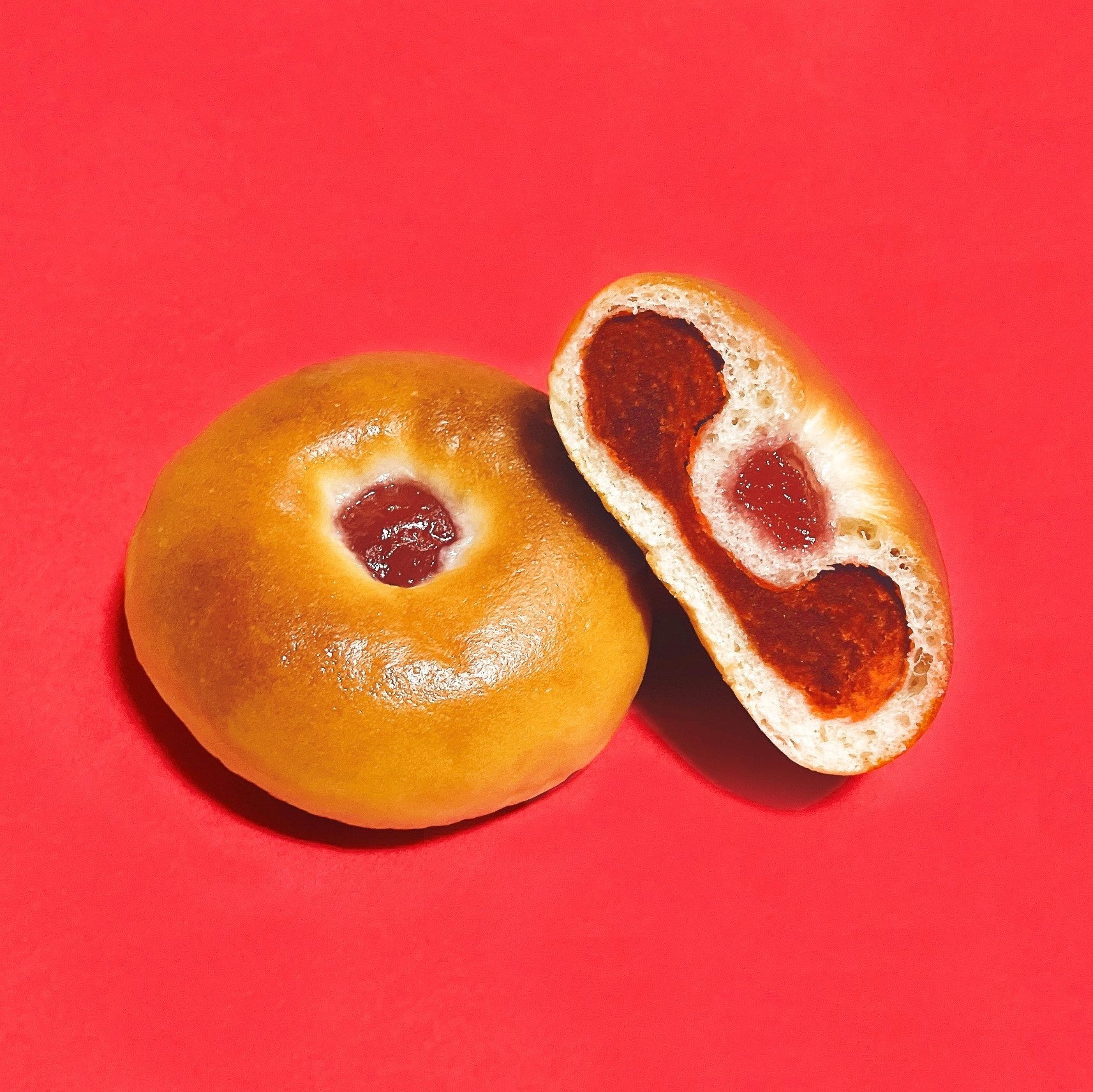 酒種入りで風味が良い生地で、白あんにラズベリーパウダーとラズベリージャムを合わせた風味豊かでさっぱりした餡を包み焼きあげました。