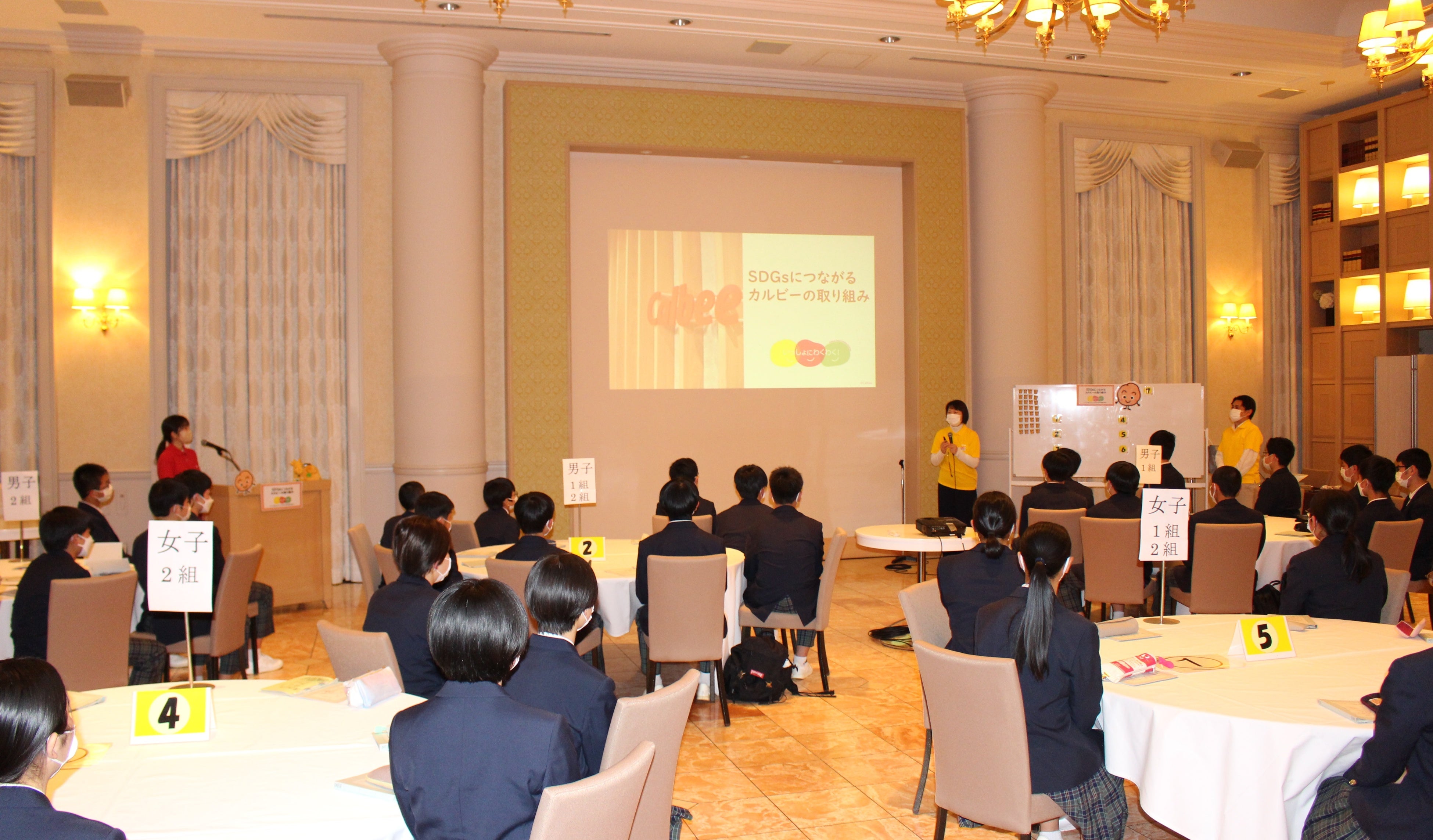 カルビー株式会社(本社:東京都千代田区、代表取締役社長兼CEO:江原 信、以下カルビー)は、修学旅行でシェラトン・グランデ・トーキョーベイ・ホテル(本社:千葉県浦安市)を訪れる生徒の皆さま向けに、「SDGs学習プログラム」を4月25日に開催しました。
